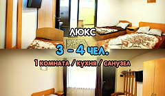 "Люкс" 1-комнатный 3х-4х-местный номер с индивидуальной кухней , "Апартаменты" (раздельные комнаты) 5-8 местный номер с индивидуальной кухней , "Апартаменты" (совмещенные комнаты) 4х-5-местный номер с индивидуальной кухней по комфортной цене