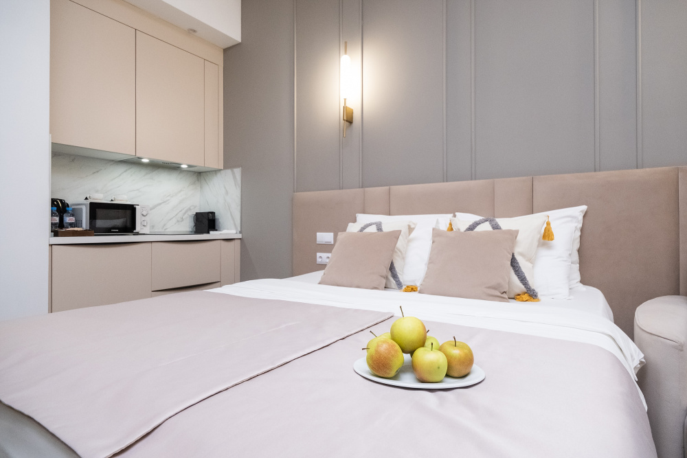 Идеально для пары или небольшой семьи: Студия с продуманной планировкой предлагает удобное размещение для троих гостей.