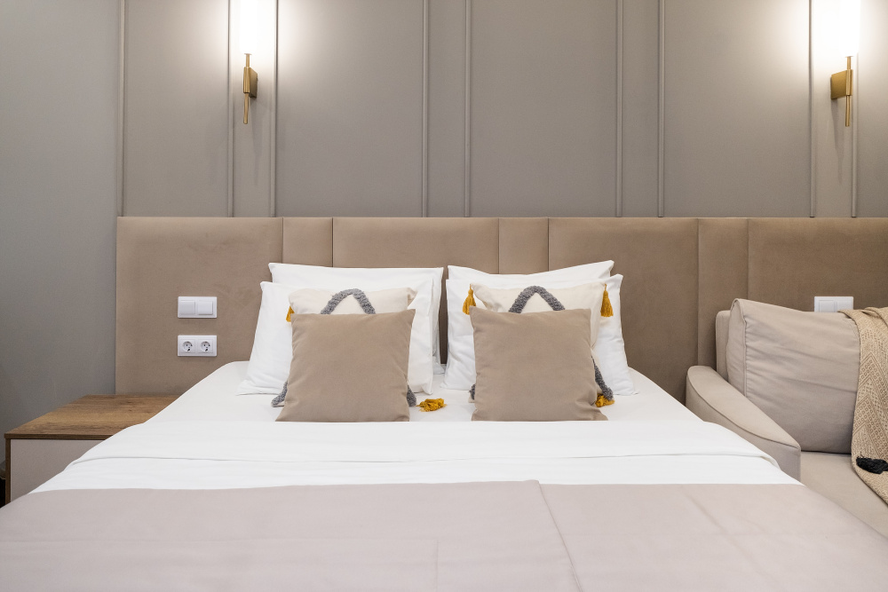 Сладкий сон: Насладитесь полноценным отдыхом на просторной двуспальной кровати и комфортабельном раскладном кресле.