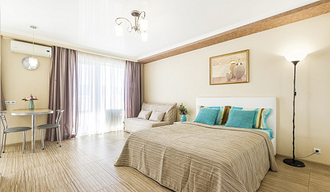 Заезд в "ApartGroup Komsomolskaya Krasnaya" 1-комнатная квартира в Краснодаре возможен с 14:00, а выезд необходимо осуществить до 12:00