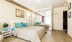 А главное Есть всё для комфортного проживания: двуспальная кровать с ортопедическим матрасом, диван-кровать, встроенный кухонный гарнитур натуральное дерево, большой зеркальный шкаф-купе, сплит/система, жк-телевизор, стиральная машинка, холодильник, эл/чайник, СВЧ - печь, утюг и гладильная доска, сушка для белья, вся необходимая посуда, хорошее постельное бельё и полотенца.
