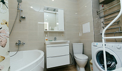 Есть всё для комфортного проживания: двуспальная кровать, диван-кровать, встроенный кухонный гарнитур, духовка, варочная керамическая поверхность, СВЧ - печь, вытяжка, утюг и гладильная доска, эл/чайник, холодильник, жк-телевизор, стиральная машинка, сплит/система, постельное бельё и полотенца, вся необходимая посуда.