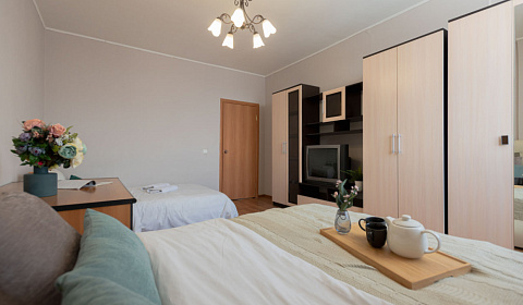 Оснащение: Квартира полностью укомплектована всей необходимой мебелью и бытовой техникой, посудой, комплектом чистого белья и полотенец. Для каждого гостя предоставляются постельное бельё, полотенца и туалетные принадлежности. Бесплатный wi-fi и smart tv.