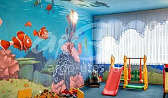 Для детей до 3 лет могут быть бесплатно установлены кроватка-манеж и стульчик для кормления. Ваши малыши смогут интересно провести время в игровой комнате 2 корпуса: посмотреть любимые мультики, поиграть с игрушками, в игровой есть карандаши, раскраски, детская качеля с горкой. На стенах-сказочные герои мультфильмов.