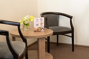 Завтрак был очень сытный и вкусный. Можно было выбирать из трёх позиций одну, две или даже три. Предлагались пшеная каша, глазунья и сырники. Каша оказалась вкусной, в меру сладкой (со слов мужа), на огромной тарелке кроме глазуньи ещё оказался сендвич с сыром и ветчина, а также овощи под соусом. Сырники тоже были очень вкусные и к ним прилагалась сметана) Минус только кофе, так как я кофеман, то 3 в 1 совершенно разочаровало. Конечно, то, что мы заказывали сами на ужин, было выше всяких похвал и латте подали настоящий, из кофемашины) Обслуживание было очень внимательным и вежливым.