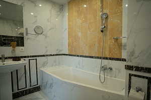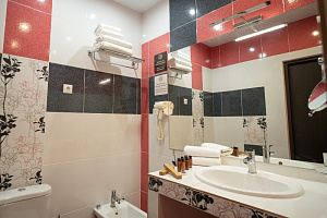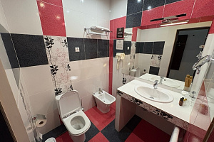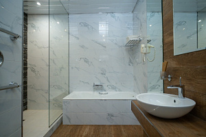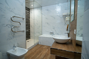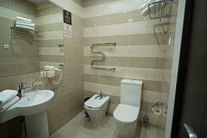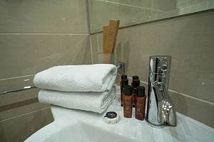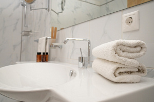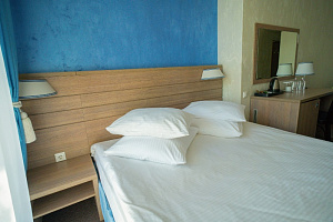 Кровать в номере очень удобная, в меру мягкая, постельное бельё чистое. В ванной комнате было всë необходимое, и также чисто. Единственный минус, вода в душе накапливалась по щиколотку.