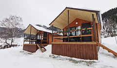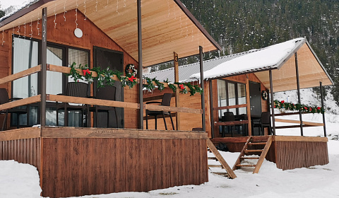 Очень довольны местоположением и самим домиком! Шикарный вид -видно весь Архыз сверху! Домики находятся в самом конце улицы на склоне .Рядом речка, смотровая вышка. Домики отдельно стоящие сруб, у каждого есть своя веранда со столом и стульями, мангал. Отдельно есть кухня с посудой. В домике тепло и уютно, две комнаты-основная комната оснащена мебелью(раскладной диван, постельное белье, одеяла, подушки, кресло, стол, стулья, тв, микроволновка, чайник, обогреватель, холодильник, вешалка, полочки для обуви, сушка для белья, ковёр, посуда-тарелки глубокие и плоские, ложки, вилки, кружки, так же чай, кофе, сахар, вода. Вторая комната-спальня-двухспальная кровать, шкаф, сейф и обогреватель. Санузел-душевая кабина, полотенца маленькие и большие, фен, мыло, туал бумага, зеркало, горячая вода, коврик. Все в отличном состоянии, чисто , уютно , не хотелось уезжать. С каждого окна прекрасный вид на горы. 15 минут езды до канатной дорожки. Приезжали семьей на старый Новый год-в восторге???????? С веранды смотрели на салюты.Все, что нужно для отдыха-здесь есть!!!! Отзывчивый и доброжелательный хозяин Вячеслав растопил нам баньку(баня на территории домиков в шаговой доступности)можно приобрести и веник там же.Баня замечательная. Вообще, все чисто, уютно и приятно! Спасибо за прекрасные условия для проживания!!! РЕКОМЕНДУЮ!!!