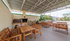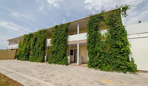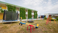 Номерной фонд дома насчитывает 11 номеров: все номера с размещением до 4-х персон. С балконов открывается вид на зеленые поля. Все номера естественно светлые, но остаются прохладными за счет зеленой изгороди. Территория гостевого дома огорожена забором. Парковка освещается, под видеонаблюдением и находится на прилегающей территории. Во дворе расположена беседка со столиками и зоной барбекю, полноценная детская площадка с батутом. Для взрослых и детей установлен большой бассейн. Также на территории гостевого дома имеется просторная кухня-столовая, где вы можете приготовить еду самостоятельно и комфортно разместиться за столиками.