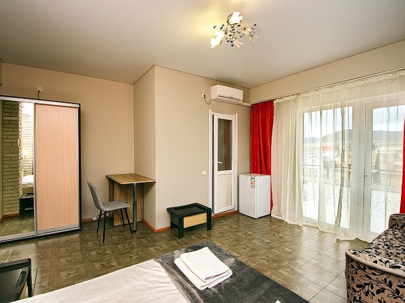 Нам понравилось, что она находится в тихом месте Судака, при этом все развлечения в шаговой доступности. Нам достался номер на 2 этаже, с видом на лестницу (кажется 24). Номер просто ОГРОМНЫЙ, хоть там и стояла двуспальная кровать нам это никак не помешало, так как мы попросили администратора и она застелила нам еще диван, который там стоял. Спали как королевы))) В номере было всё, что нужно. Уже забронировали этот номер на начало сентября. А хозяин нас обрадовал, что теперь у него есть бассейн.