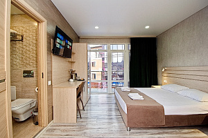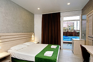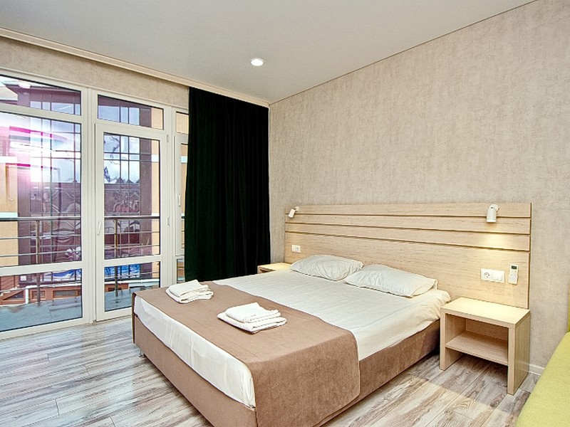 Проживали семьей в гостинице АВА. Номер стандартный со всеми удобствами на 3 этаже с выходом на большую террасу с видом на город. Работало все исправно, нареканий нет. Уборки в номерах нет, об этом нас предупредили в турфирме. Бассейн на территории отличный, ребенку понравился.