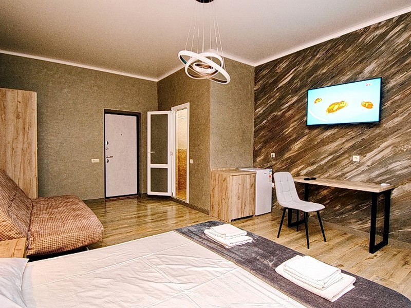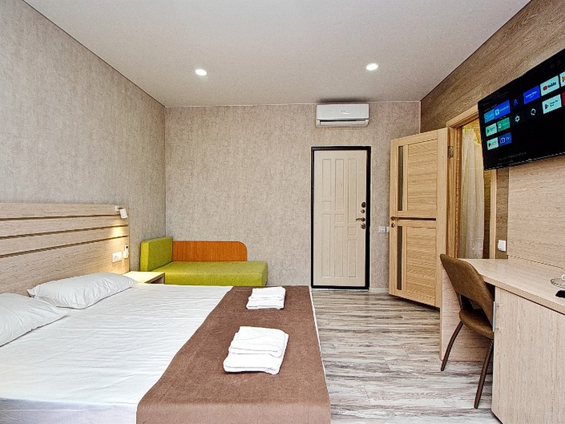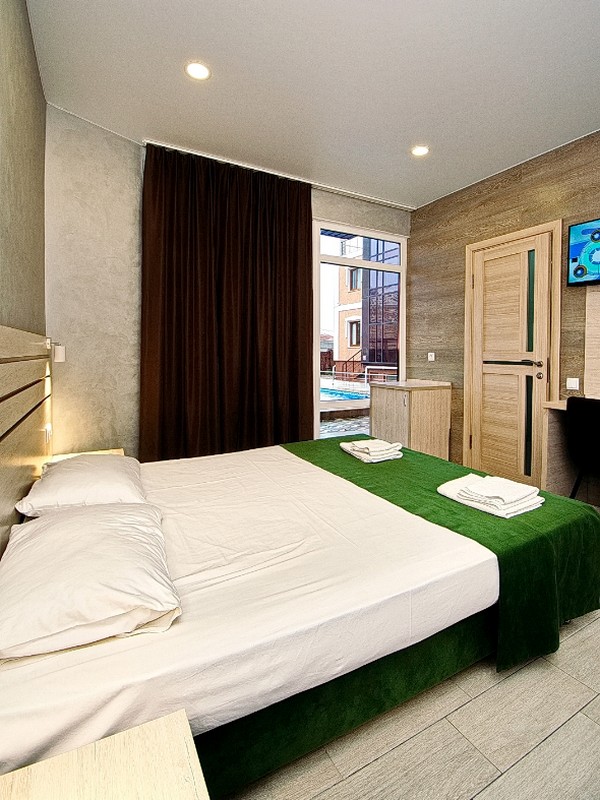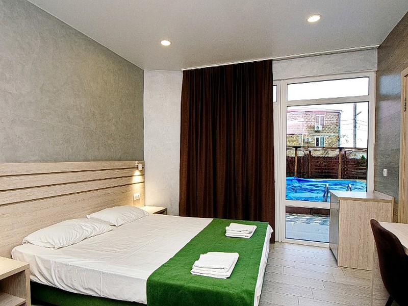 Мы связались с хозяином вначале июня, и хотели забронировать номер до 2000 на июль, но он нам ответил, что за такую сумму нет свободных номеров. Но сказал что есть ещё свободные номера в новом корпусе. Мы спросили у него можно фото, он ответил что фотографий ещё нет так как гостиница на стадии завершения. В итоге мы забронировали номер в слепую, и не разу не пожалели об этом. В итоге номер был очень красивые, уютные и самое главное чистые. Пастельное белье было белое и чистое без каких либо пятен. На 4 день у нас спросили по поводу уборки номера. Мы согласились, в номере была произведена влажная уборка с заменой постельного белья и полотенец.