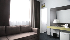 Дизайнеры позаботились о создании современных интерьеров номеров и общих зон отеля. Продумана каждая мелочь в оформлении и отделке, что делает атмосферу в гостинице по-настоящему домашней и теплой. Во всех номерах все предусмотрено для полноценного отдыха и плодотворной работы – рабочий стол, телефон, телевизор с плоским экраном, холодильник, сейф, фен, электрический чайник, посуда, чай, сахар. Для каждого гостя имеется комплект махровых полотенец, халат, тапочки. Косметические принадлежности для душа также предоставляются гостям бесплатно. Все – отличного качества! На всей территории отеля для гостей бесплатный WI-FI, возможность воспользоваться ксероксом, сканером.