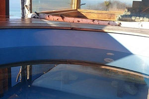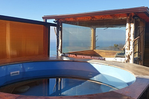 С краю расположена парная на дровах с витражными окнами с потрясающим видом на море.