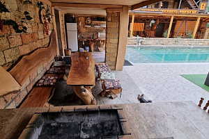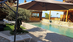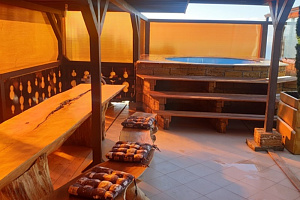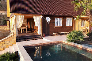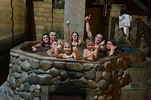Экологически чистый уголок природы с видом на черное море, поле с цветущим садом и разнообразным пением птиц. Здесь, Вы окунетесь в спокойствие и беззаботный отдых. Для Вас и Вашей компании: родных и близких, коллег по работе, друзей всегда открыты двери уютных гостевых домиков. Каждый домик рассчитан на разное количество людей, имеет собственный дворик, парковку, парную комнату с использованием эвкалиптовых, березовых, дубовых, пихтовых веничков с добавлением эфирных масел. Бассейн. В 2 домиках есть полюбившийся всем, кто в нем побывал - чан над костром, что в любую погоду придаст сил и умиротворение. Купель, детские игровые зоны, мангал, ТВ, DVD, караоке, свето-музыка, Wi-Fi. У нас в гостях, каждый найдет дело по вкусу и стар и млад... Рядом расположен 3х-этажный гостевой дом, на случай, если вдруг гостям не хватает места, чтобы переночевать, а не хочется расходиться... 6 номеров со всеми удобствами. Домики можно арендовать, как на несколько часов, сутки, так и на длительное проживание. Мы можем предложить Вам свое меню. Выезд парильщика и массажиста. Акции, номерной фонд и цена бань отличается. Все подробности у администраторов. Мы работаем КРУГЛОСУТОЧНО! Будем рады видеть Вас у нас в гостях!