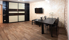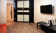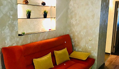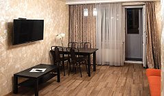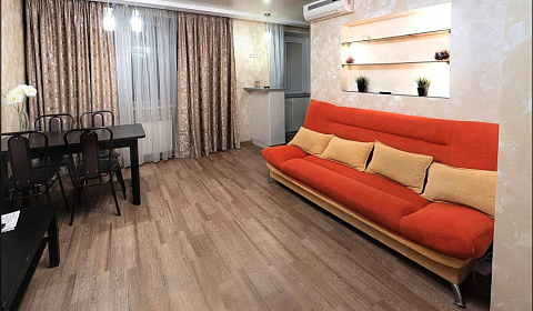 В апартаментахАпартаменты отремонтированы. Внутри имеется: совмещённый санузел, двуспальная кровать, два двуспальных дивана, два кондиционера, лоджия. Также апартаменты являются оборудованными, предоставляются кухонные принадлежности, постельное бельё и полотенца.