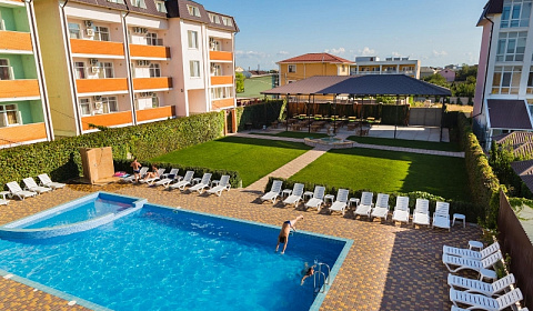 Чистый сухой воздух, целебные морские бризы, широкие песчаные пляжи, удалённость от цивилизации станут прекрасной возможностью для полноценного отдыха! Курортный посёлок Николаевка в Крыму - отличный курорт для семейного отдыха на берегу Каламитского залива Чёрного моря. Тихое местечко Николаевка расположено на юго-западном побережье Крыма, между Севастополем и Евпаторией, в 40 км. от Симферополя. Он находится в уникальной климатической зоне, сочетающей мягкий морской климат побережья с сухим климатом степного Крыма. Западный берег Крыма - это в основном степная равнинная зона, но возле моря в некоторых местах есть красивые утёсы, образовавшиеся из-за подмывания берега волнами Чёрного моря. В береговом обрыве после шторма возможны всякие занятные палеонтологические находки. В 1968 году в районе посёлка Николаевка в береговом обрыве "обнажился" участок отложений, в котором были найдены костные остатки древних ископаемых, сравнительно недавно ещё обитавших в Крыму (гиппарион, слон…). Здесь всё рядом, на расстоянии пешей прогулки, - море, благоустроенные и "дикие" пляжи Николаевки, рынки, магазины и исторические памятники, и открытые площадки, на которых проходят интересные программы. Ещё осенью 1858 года в этом районе, рядом с источником Николов ключ, был основана деревня, которую назвали Николаевкой. На выжженной солнцем земле были разбиты шалаши, вырыты землянки. В начале ХХ века здесь появились хаты, крытые соломой, а затем - домики из инкерманского камня и ракушечника, их окружили сады с огородами, протянулись широкие улицы… С 1959 года началось строительство посёлка Николаевка как природного климатического курорта… В настоящее время на территории посёлка находится Дом культуры с тренажерным и спортивным залами, библиотека, сеть частных магазинов, столовых, баров, два рынка и другие необходимые для жизни службы. В местном Доме культуры проводятся различные выставки, концертные программы, показы кинофильмов. В последнее время посёлок Николаевка заметно похорошел, стал более благоустроенным, здесь имеется развитая сеть курортного сервиса. Современная Николаевка - крупный центр курортно-рекреационного значения с красивыми благоустроенными гостиницами и отелями, спортивные сооружения олимпийского уровня. Гостевой дом “Белый лев” построен в 2010 г. Идеален для семейного отдыха с детьми, отдыха дружной компанией и для проведения деловых встреч и мероприятий (корпоративные туры, семинары).