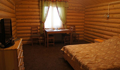 Размеры домика, за такие деньги очень хорошо. Даже сауна в номере есть (правда, не было печки, но думаю это решаемо). Красивая роща. Можно пожарить шашлыки прям перед домиком, мангал дают. Завтрак обычный столовский (яичница, сосиски, бутерброды) за 350 руб.