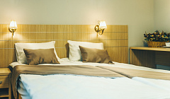 Кровати удобные, матрац упругий. Постельное белье белое и чистое.