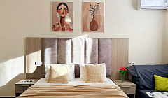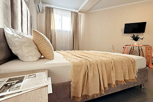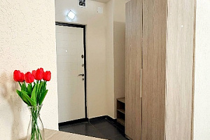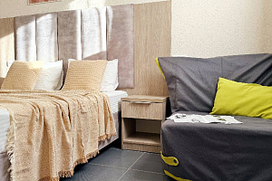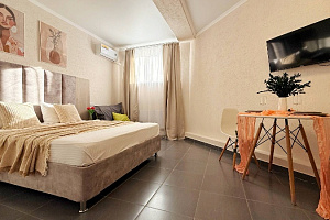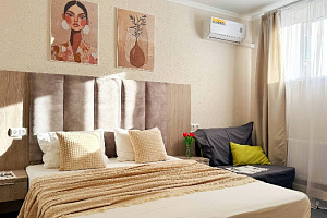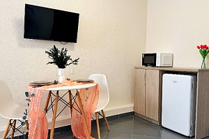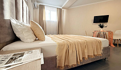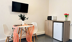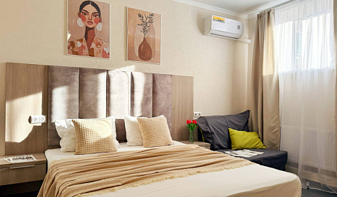 Просторная студия 24 м² — светлая, свежая, как новый день: → Уютная двуспальная кровать 160×200 с качественным матрасом и премиум-бельем → Полностью оборудованная кухонная зона — холодильник, микроволновка, чайник, вся необходимая посуда → Светлый новый ремонт — чистые стены, современная мебель → Идеально для троих — достаточно места для семьи или компании друзей без ощущения тесноты