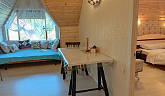 Очень понравился домик! красивый и уютный, всё сделано как- то с душой! Комнаты просторные, чисто, тепло, постельное бельё хорошего качества, много посуды. Отличная беседка с мангальной зоной возле реки. Вид потрясающий. Фотографии соответствуют действительности. Отдельное спасибо хозяевам за проживание с небольшой собачкой!