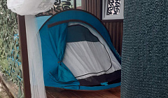 Мы находимся в живописной горной части Крыма. Домик (из сайдинг панелей) общей площадью 18 м2 и террасой 12 м2 расположен на территории жилого участка, где живет семья. В числе удобств - бесплатная парковка. Туалет и душ - на улице, вода - из колодца. Полотенца и постельное включены в стоимость.