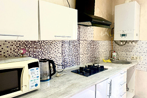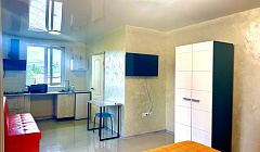 Кухня: есть вся необходимая посуда, двухкомфорочная стеклянная плита, вытяжка, холодильник, раковина, вода постоянно горячая и холодная. Номера рассчитаны до 3-4х человек чел человек. (дополнительно бесплатно можно разместить ребенка четвертого)