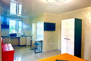 В студиях есть кондиционер зима-лето, электро конвектор, микроволновая печь, чайник, плазменный телевизор , интернет, принадлежности для глажки белья, горячая холодная вода круглосуточно, постельное белье и полотенце для каждого гостя.