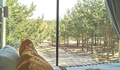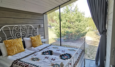В гостевом домеВ доме есть спальня, кухня-гостиная, санузел, веранда, терраса. В распоряжении гостей: телевизор c эфирным телевидением, SmartTV и подпиской Ökko, виниловый проигрыватель с коллекцией пластинок, небольшая библиотека и настольные игры.