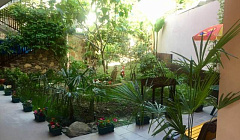 Отель находится на тихой улочке, очень комфортно и хорошо спится ночью. Буквально в минутах 2-3 ходьбы уже основная улица со всеми магазинами, столовыми и т.д. До моря идти минут 10-15, недалеко)