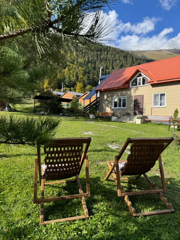 - Терраса с великолепным видом на горы и лес. Где удобные кресла, утренний кофе и чистый горный воздух создают атмосферу уюта и гармонии.