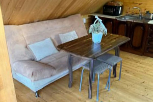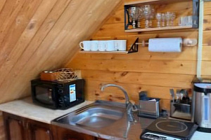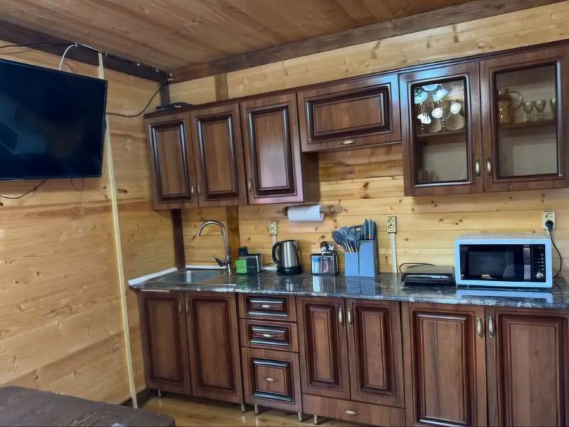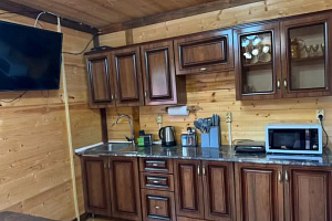 Рядом с входной дверью полностью оборудованная просторная общая кухня ,где при желании можно приготовить любимые блюда. На территории есть беседка для постостояльцев этого номера, мангалы ( предоставляем шампуры, решётки, казаны), шезлонги, летом ставим для детей большой батут.