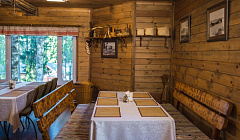 Хорошее расположение , большая территория, есть беседки с мангалом. Баня жаркая, но сухая . В ресторане еда вкусная .