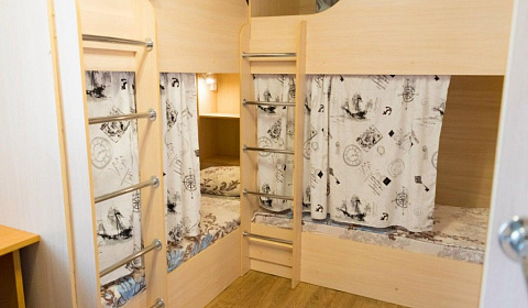 Кровать в общем номере (мужской номер) с красивым видом из окна (общая ванная комната)