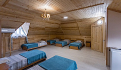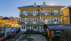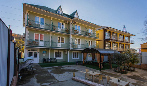 Гостям предоставляются комфортные двух, трех, четырехместные номера класса «стандарт», а также просторные семейные номера (на 3-10 спальных места). В каждом номере холодильник, кондиционер, чайник, ванная комната с душем, санузел, шкаф, а также балкон и бесплатный Wi-Fi. Интерьер выполнен в светлых тонах, что позволяет гостям чувствовать комфорт и уют. В 10 минутах ходьбы находится большой песочно-галечный пляж, с прекрасным, чистым морем, супермаркеты, заведения общественного питания.Путь к морю без подъемов и спусков проходит по асфальтированной дороге, вдоль которой находятся различные магазины и кафе. В распоряжении гостей предоставляется общая кухня с кухонными приборами и обеденной зоной. Приготовить мясо или овощи можно на мангале во дворе. Для самых маленьких гостей на территории детский бассейн. Для вечернего времяпрепровождения беседка, баня, бильярд, теннисный стол и парковка для автовладельцев с круглосуточным видеонаблюдением.