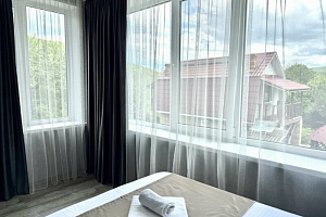Гостиница «Дом Кролика» — это комфорт в сердце природы и настоящая сказка для тех, кто ищет уединение, тепло и живое общение с природой. Представьте: вы просыпаетесь в тишине, открываете окно — и вдыхаете свежий горный воздух, наполненный ароматом сосен. Перед вами — хребет Уна-Коз, шум реки Дах и зелёные просторы Адыгеи. А в уютном уголке нашего ландшафтного дворика создана особая атмосфера: декоративные элементы, скульптуры и детали интерьера, вдохновлённые образом кролика. Этот персонаж стал символом «Дома Кролика» и придаёт месту особую теплоту и очарование. Наше место создано для тех, кто ценит повышенный комфорт и безупречный сервис, не отказываясь от близости к природе. Здесь нет городского шума — только тропы к древним пещерам, скалам, водопадам и легендарным местам Адыгеи: пещера первобытного человека скала Чёртов палец монашеские кельи и камень Утюг плато Лаго-Наки — одно из самых вдохновляющих мест региона. В отеле — только просторные комнаты категории «Комфорт», оформленные с вниманием к деталям. Каждая комната оснащена кондиционером, современной мебелью, качественным текстилем и всем необходимым для полноценного отдыха. К вашим услугам: Завтраки, приготовленные с душой и подаваемые в уютной обеденной зоне или на свежем воздухе Русская баня на дровах и хамам Мангальные зоны и летняя терраса Бесплатная парковка для гостей. Ландшафтный дворик создан для неспешного отдыха — здесь всё продумано так, чтобы вы чувствовали себя в сказочном мире, где кролик стал главным героем. Атмосфера «Дома Кролика» погружает в уют, лёгкость и доброжелательность, делая каждый день чуть теплее. Отель «Дом Кролика» — это выбор для тех, кто хочет совместить комфорт отельного уровня с живой природой, уединением и душевной атмосферой. Здесь легко дышится, хорошо спится и особенно приятно возвращаться — ведь вас ждут не только уют и тишина, но и сказочный антураж, который делает отдых особенным. Объект прошёл классификацию: Реестровая запись: С012025018130