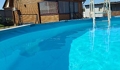 и сам дом с закрытой территорией ,чтобы поставить машину и не беспокоиться, и месторасположение. Да, ехали мы из Санкт-Петербурга, конкретно в Кучугуры. Изображения на фотографиях полностью соответствуют действительности. Дом внутри достаточно комфортный и уютный, внизу две спальни с широкими кроватями, наверху три спальных места, плюс диван. Спали каждый раз, где хотели, друг другу не мешали) В каждой комнате кондиционер. Телевизор мы и не смотрели, некогда было. Готовили самостоятельно, для этого в доме есть все кухонные принадлежности ,посуда ,плита. Очень удобно ,как дома. Что захотели, то и приготовили. Бассейн спасал нас вечерами ,когда уже поздно идти на море, а купаться хочется. Или днем ,кому было лень идти на море, оставался дома, и очень комфортно проводил время на лежаках. Во дворе есть отдельный летний душ и туалет, тоже удобно, когда много народу) Погода не подвела, все две недели солнце. До пляжа идти минут 10, а по пляжу - в любую сторону, вдоль моря, бесконечно. Заход в море песчаный, нет крутых обрывов. Постепенная глубина, нам это было удобно, так как младшей дочке 6 лет. Из воды ее было не вытащить. Кстати, именно здесь научилась плавать. Море было всегда разное: и спокойное, и слегка взволнованное, и с крутыми волнами. Мы купались в любую погоду. В самом поселке много продуктовых магазинов, лавок с фруктами и овощами, есть вещевой рынок, всё под рукой. Ну и большой плюс, что мы были на машине, и объехали все ближайшие и не совсем близкие окрестности. Посетили другие пляжи здесь, на Азовском море, а они все разные и красивые. Несколько раз ездили на Черное море, в Абрау-Дюрсо, на лавандовые поля. Ездили в Крым. До Керчи - час, а там уже куда хочешь: в Ялту или Севастополь. В общем нам понравилось абсолютно всё. Конечно же, отдельное спасибо доброжелательным хозяевам. Ориентировали нас по всем вопросам, где лучше купить те или иные продукты, куда еще поехать, что посмотреть. Мы до сих пор вспоминаем эти две недели и планируем на следующий год опять сюда, на Азовское море, надеюсь, что всё получится)