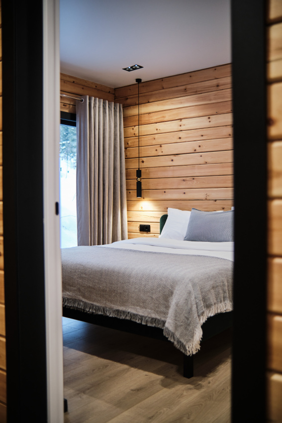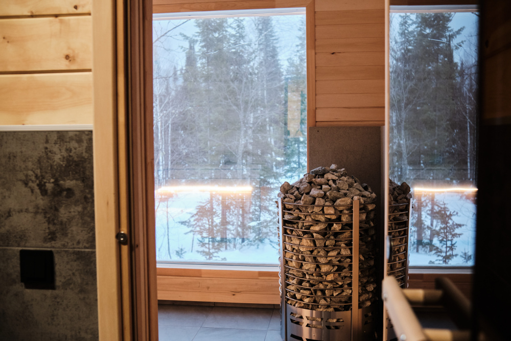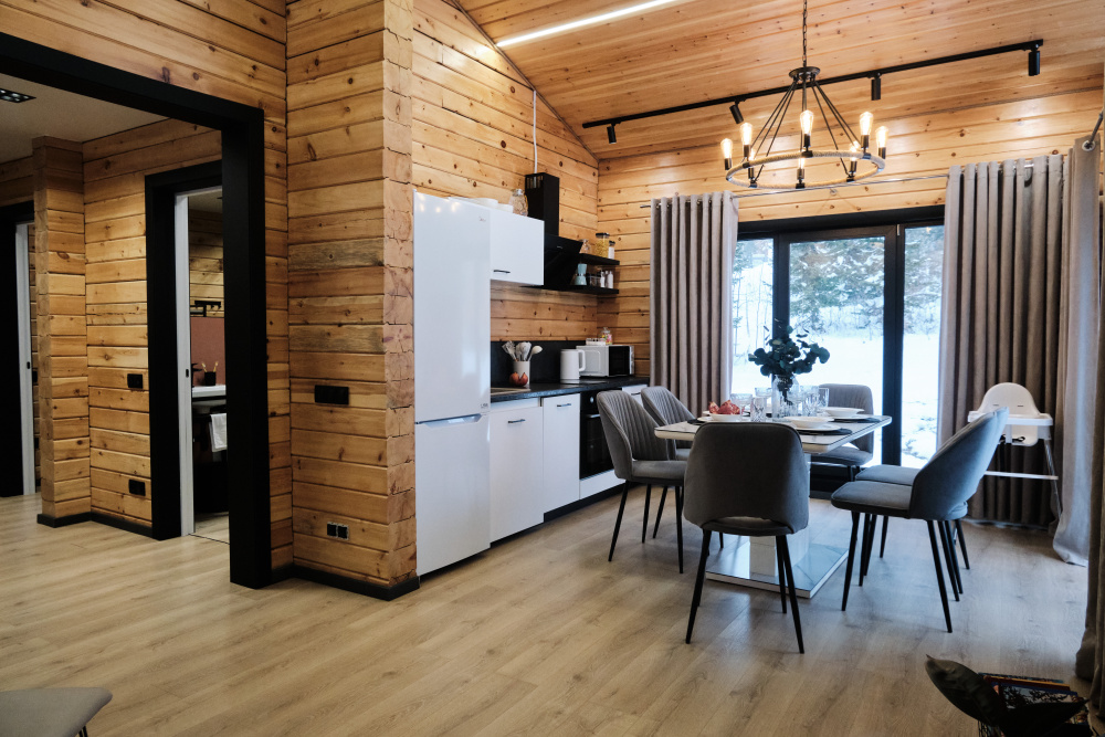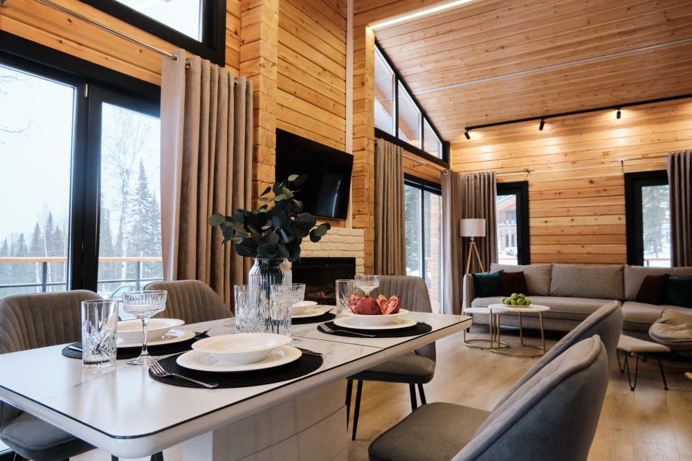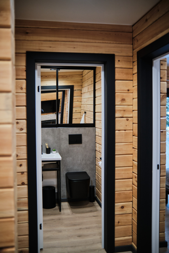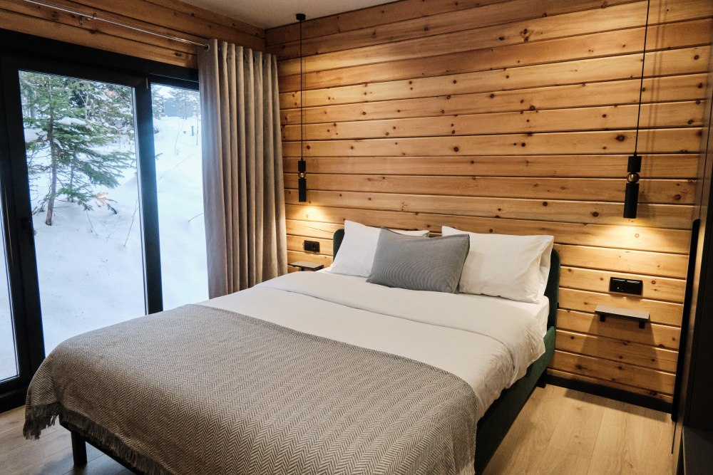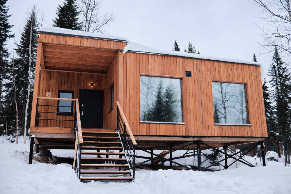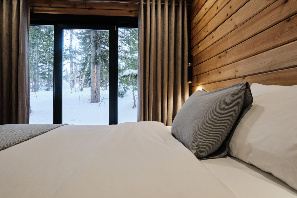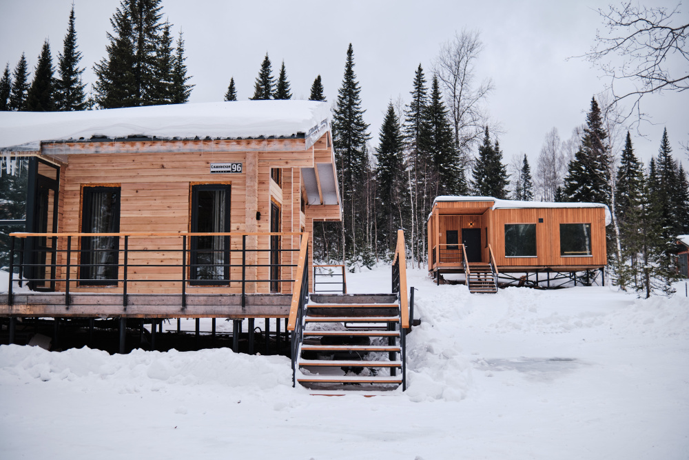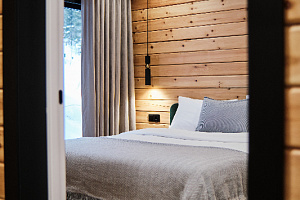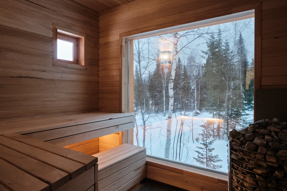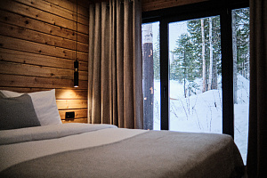 Дом в лесу с панорамными окнами плюс сауна. Здесь тепло, уютно и максимально близко к природе.