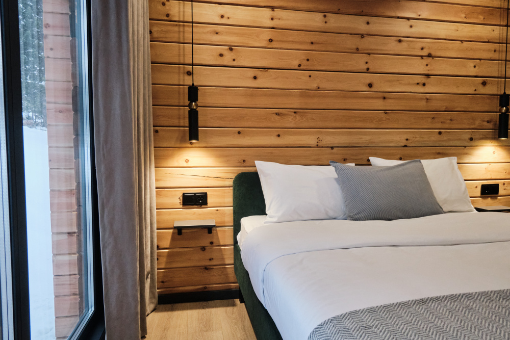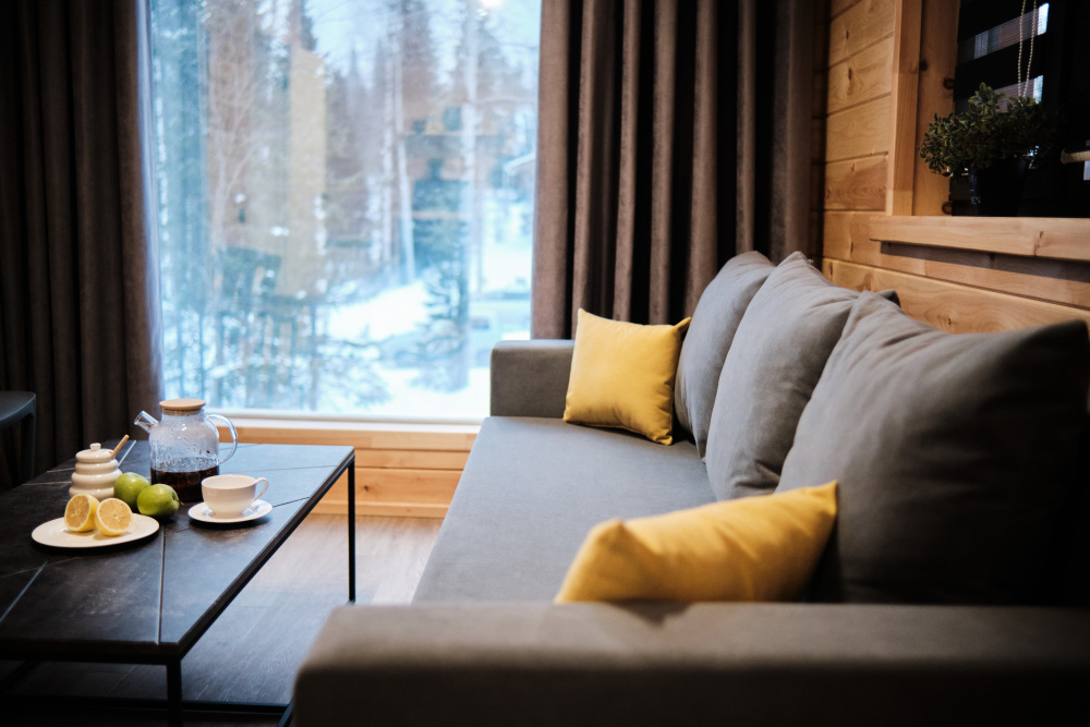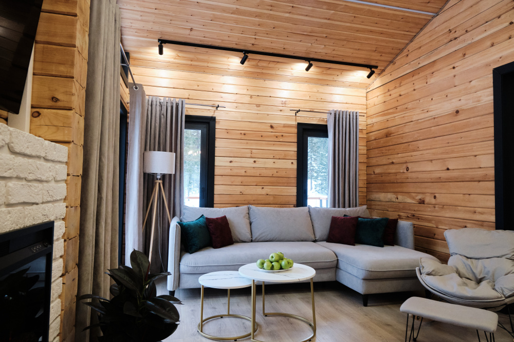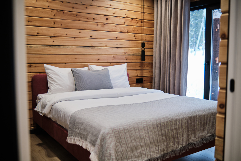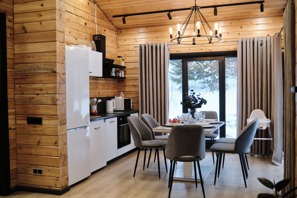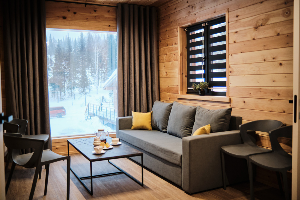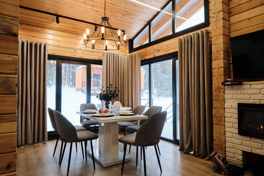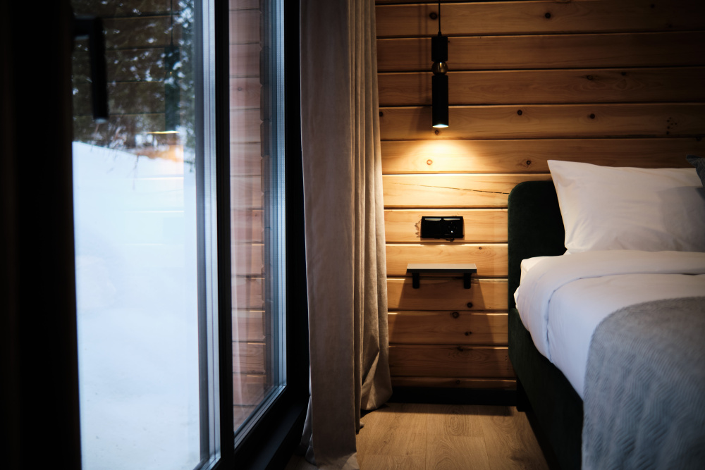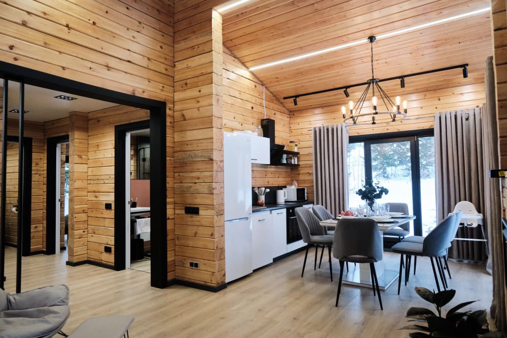 Дом в лесу с панорамными окнами плюс сауна. Здесь тепло, уютно и максимально близко к природе.