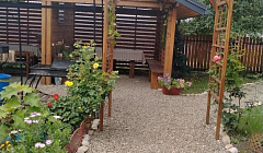 К услугам отдыхающих: стиральная машина, гладильные принадлежности, зеленый двор, беседка, свч.