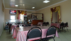 Гостиница, столовая,магазин, парикмахерская.