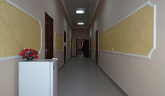 Коридор в гостинице оформлен красиво ,в конце коридора есть кресло ,стол, большой диван где можно с друзьями поседеть отдохнуть.