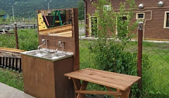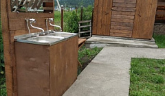 Рядом с домом расположены 2 душевых, туалеты и раковины.