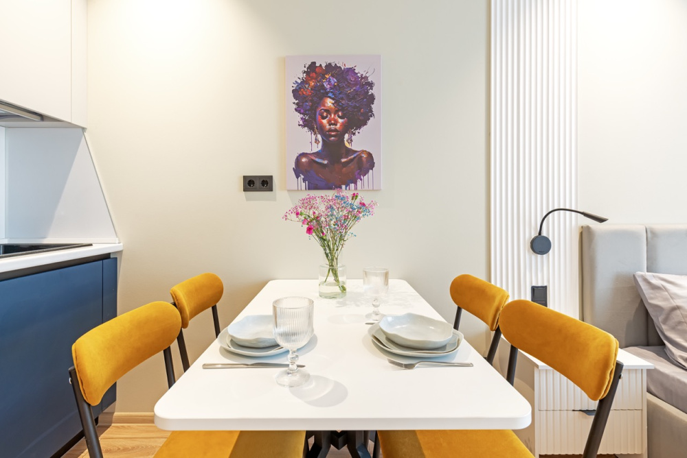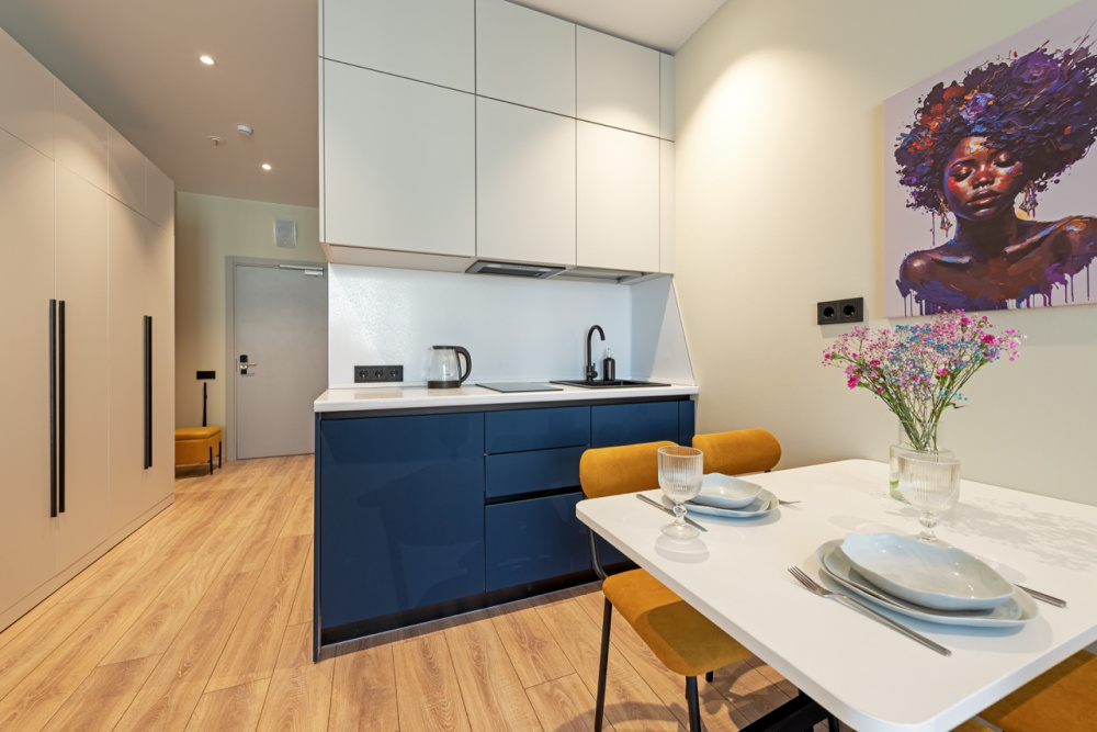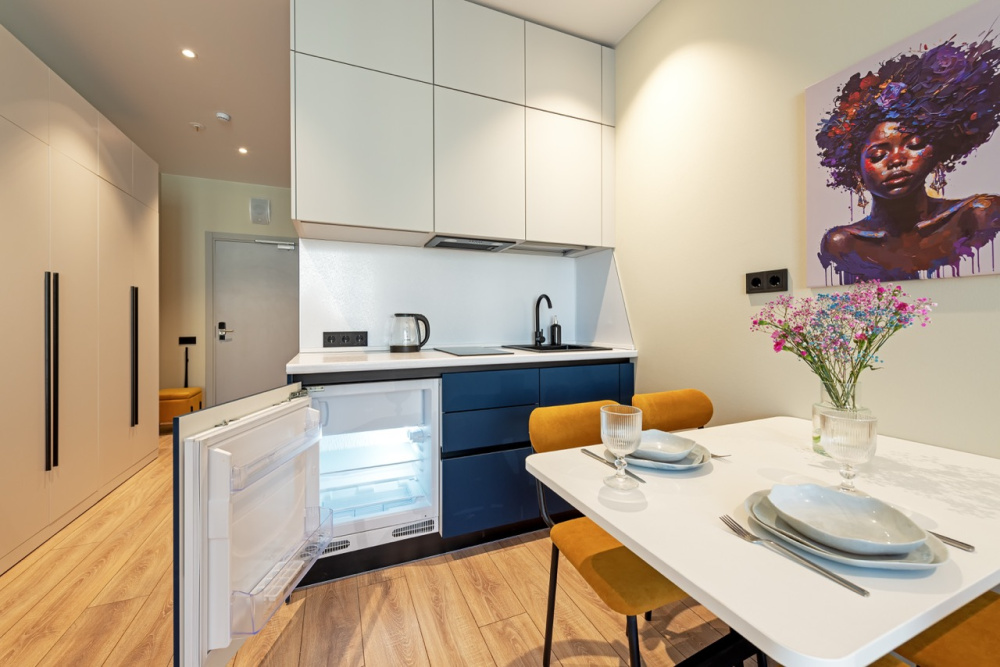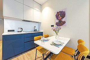 Стильная современная квартира с оборудованной кухней, с новым ремонтом в доме бизнес класса. Всего 10 минут до станции метро Ладожская
