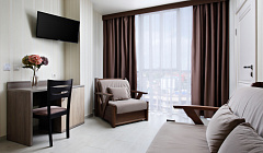 Расположенный в центральной части известного своими песчаными пляжами курортного поселка Витязево, пансионат Family является идеальным местом для семейного отдыха на черноморском побережье Краснодарского края. В непосредственной близости от отеля находится парк аттракционов «Византия» и луна-парк «Витязево», в которых каждый из членов семьи без труда найдет развлечения на свой вкус. Дорога к морю, которая проходит через центр курортной жизни, оформленный в древнегреческом стиле бульвар «Паралия», займет у вас не более 10 минут. Питание полный пансион в формате «Шведский стол» в ресторане пансионата включено в стоимость проживания, что избавит вас от необходимости думать о том, где вкусно и полезно питаться во время отдыха. Также на территории отеля расположен подогреваемый бассейн с детской зоной, а анимационная команда пансионата не даст вам скучать ни минуты. Все номера пансионата Family с балконами и оборудованы сплит-системами, современными ТВ с плоским экраном, мини-холодильниками, сейфами и вместительными шкафами для хранения одежды. В каждом номере индивидуальная ванная комната с душевой кабиной, набором полотенец, феном и всеми необходимыми гигиеническими принадлежностями.
