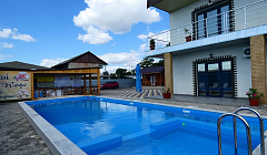Открытый бассейн на территории имеет зоны разной глубины для детей и для взрослых.