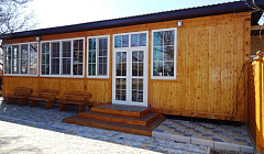 Для организации питания в отдельном помещении рядом с домиками расположена общая кухня (плита, микроволновая печь, посуда).