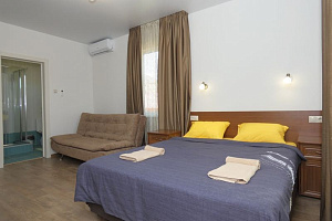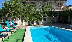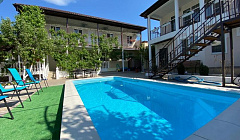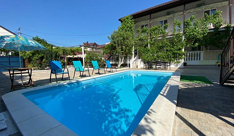 Самый лучший отель и хозяева, Надежда Владимировна спасибо огромное вам за такое радушное гостеприимство и поддержку во всех вопросах) Отдыхали с супругом, сыном и песиком в мае с 19.05.2023г , Очень уютно и ухоженно , нет ощущение барака , а нам есть с чем сравнить , когда с отеля хочется убежать туда где красиво , в этом случае в отель бежали с удовольствием, во дворе большой бассейн с подогревом , двор весь в плитке , растут розы , ни какой лишней пыли и песка , очень уютно чувствовали себя как дома) так же есть общая кухня , зона для шашлыка , и много много позитивного и доброго отношения к нам)) Выбирайте этот отель однозначно рекомендуем , прям 5 звезд)) Спасибо , хочу обратно)))