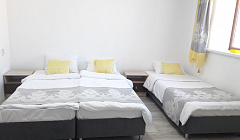 Две спальни по 17м2. В каждой по три кровати (двуспальная или три односпальных-по договоренности). В каждом спальне большой телевизор SMART (с выходом в интернет), шкафы, тумбочки.