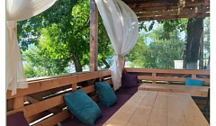 Можно прогуляться по территории и песчаному берегу реки Волги.