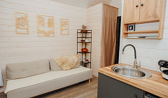 В кухне-гостиной двуспальный диван, мини диван 180*70; Smart TV;